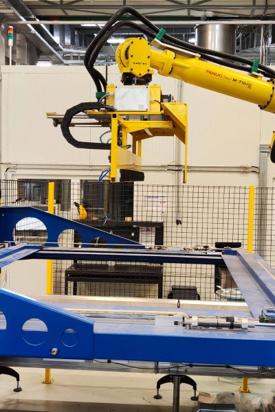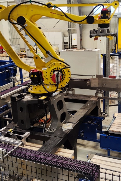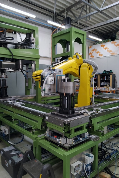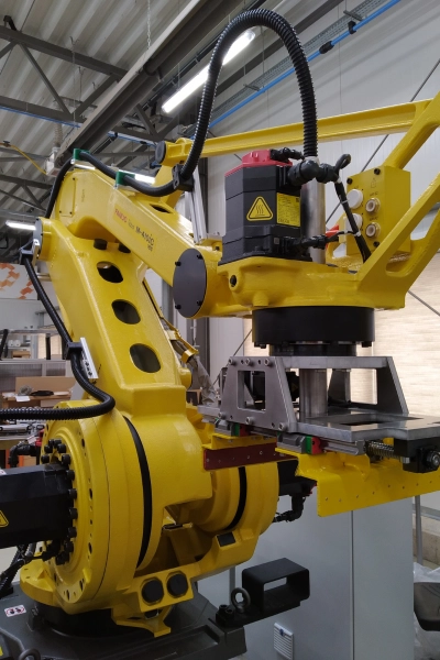 The proper design of the robot-cell and tooling provide flexible and relatively low-cost adaptation to the changing measurements and attributes of the workpiece. A robotised system is capable of infinitely repeating such complex, speed- and performance demanding tasks that surpass the capabilities of any human workforce. As part of our previous works, we have built high-performance palletizing robot-cell, SCARA-fed laser-engraving cell, packaging-material preparing and providing robot-cell, dosing head moved by a robot and many other applications.